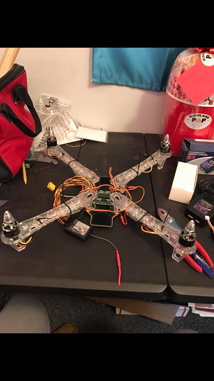 Many of our members with an engineering background are very interested in designing and builiding our own drones. Our club president has pioneered this and finished our club first drone in Spring 2017.